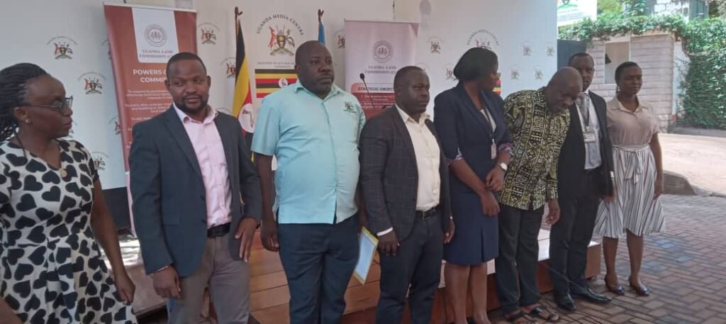Commissioner John Fisher Kasenge 3rd right and Board Secretary Andrew Nyumba 2nd left with other wo